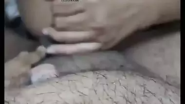 Excited girl masturbates pussy and strokes Desi XXX fucker's cock with hand